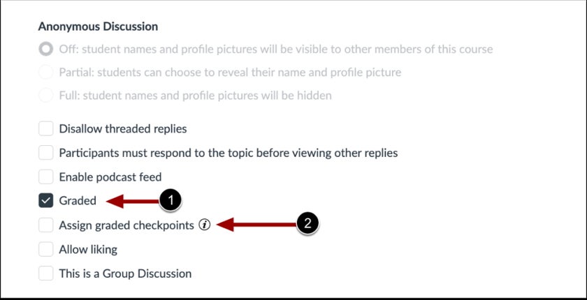 • Under Options, check “Graded,” then select “Assign graded checkpoints.”